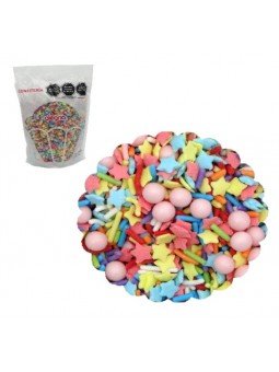 Decoraciones de azúcar en forma de estrellas: azul, amarillo, naranja. Granillo de colores: rojo, rosa, lila, verde y azul. Perlas: rosa claro. Ideales para decorar pasteles, postres y helados. Producto importado de China.